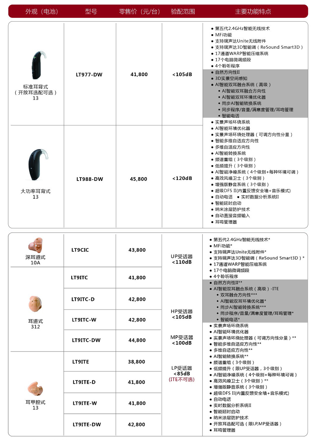 一、瑞聲達(dá)聆客3代9耳背式助聽器價格表:
